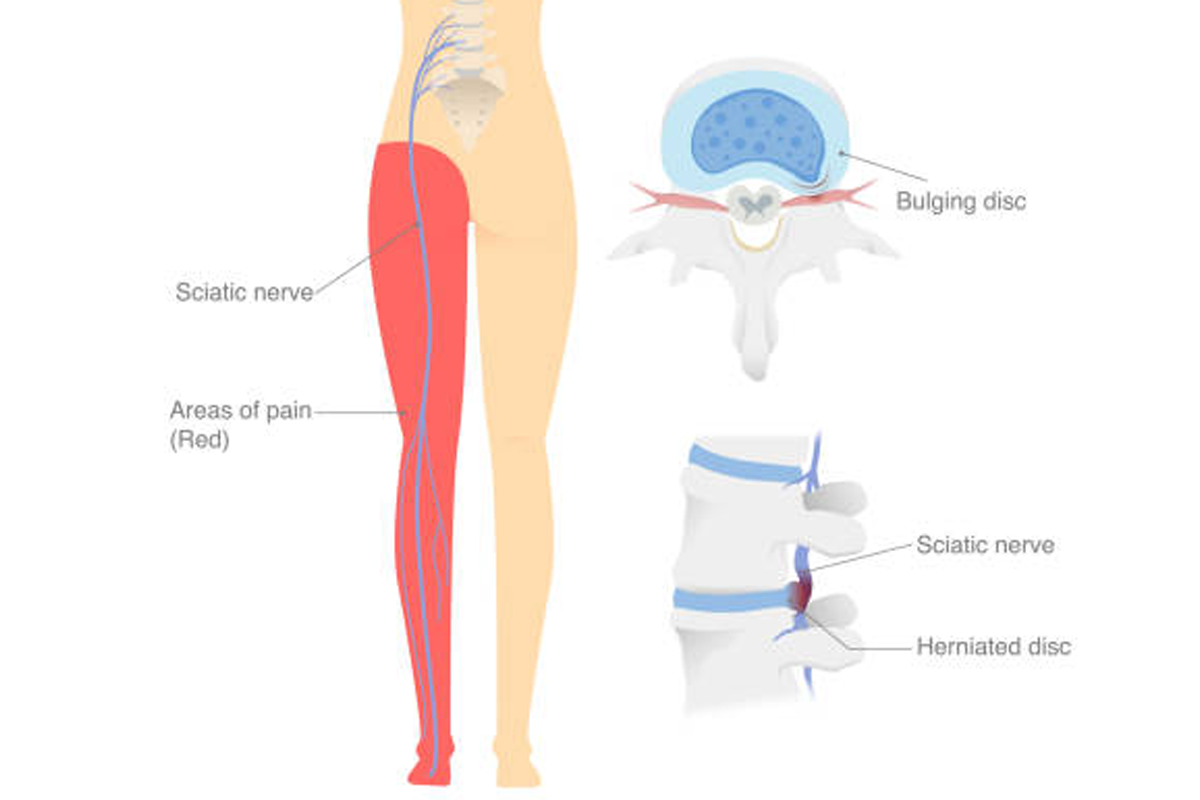 Sciatica usually refers to the pain experienced by people which radiated from back to their foot. It usually occurs due to the inflammation of either the nerve roots forming the sciatic nerve, or the sciatic nerve itself. Most commonly it is associated with Spine problem affecting L4,L5,S1 nerve root.